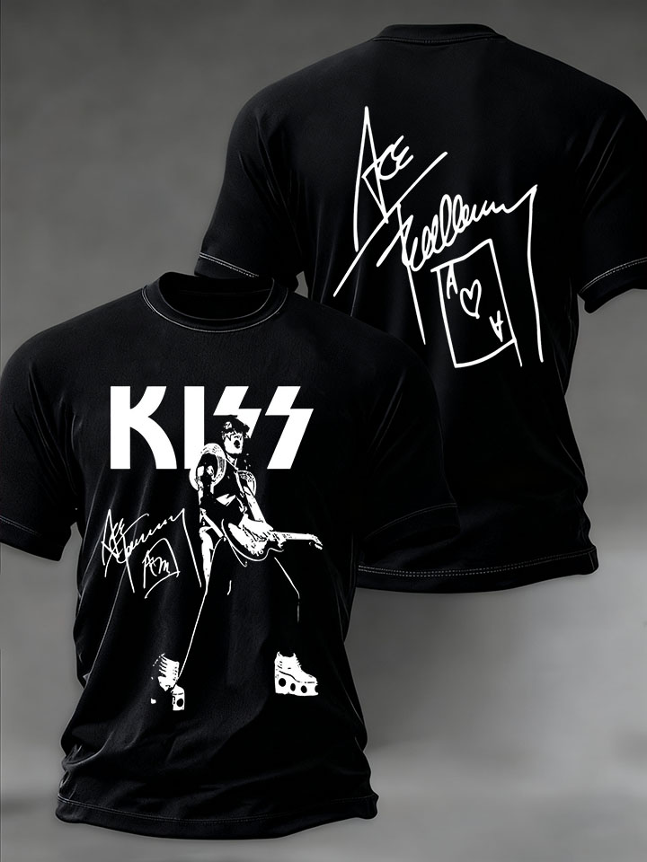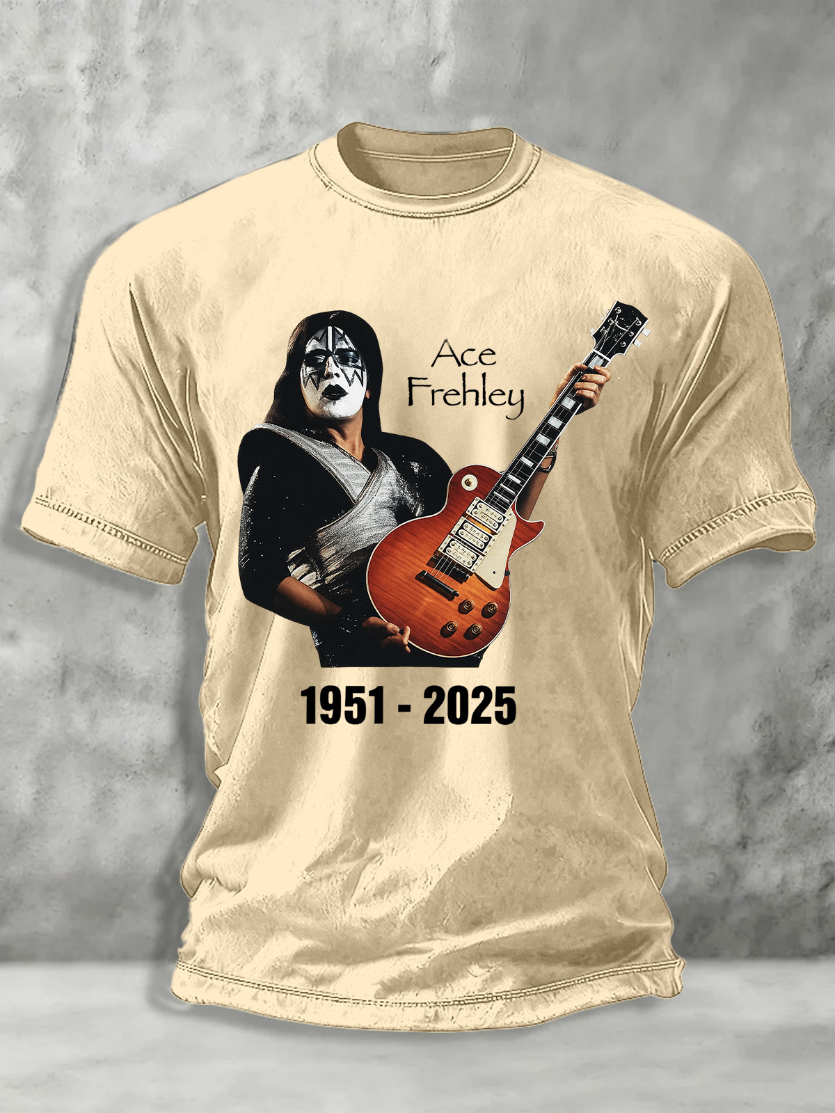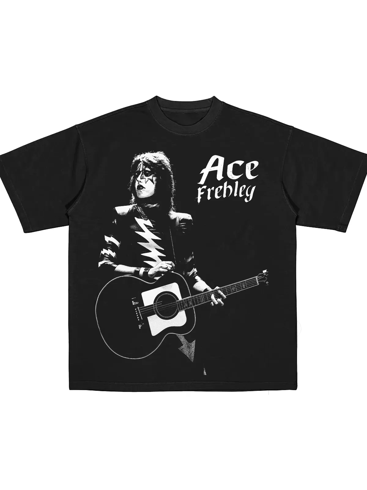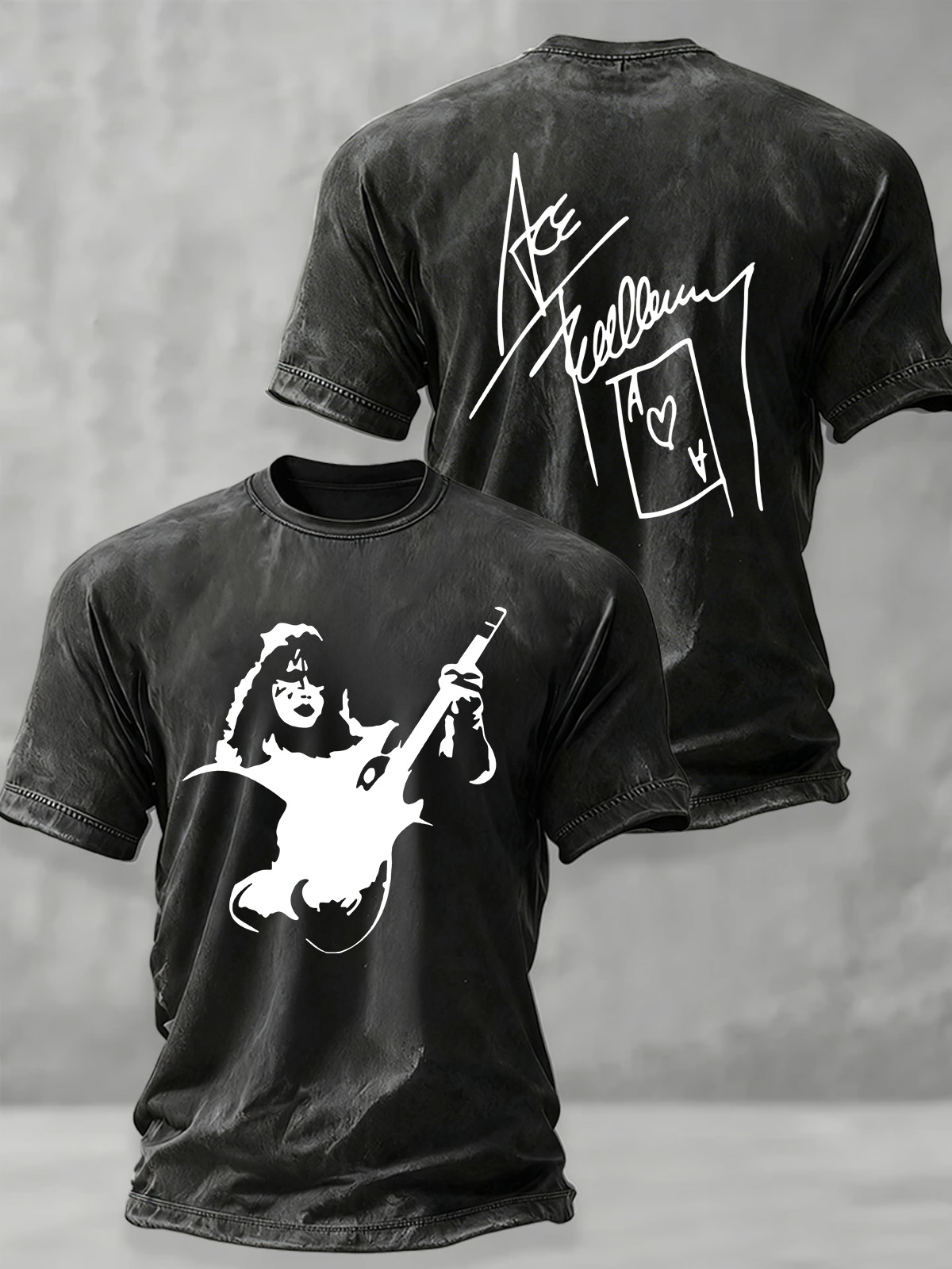 Men‘s Ace Frehley Print Short Sleeve Unisex Washed T-Shirt