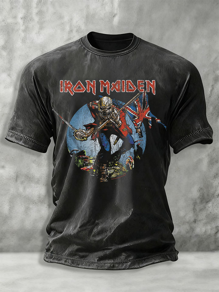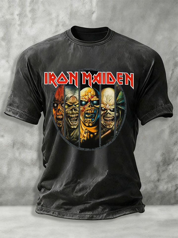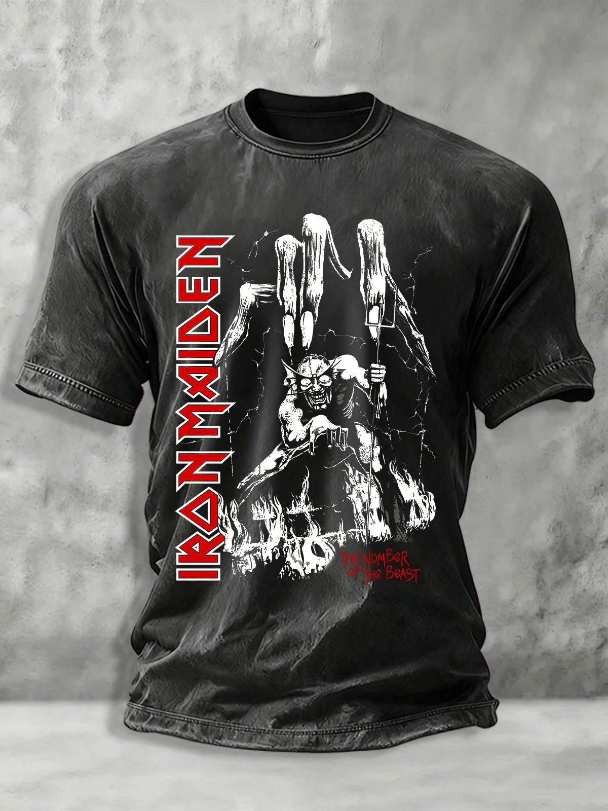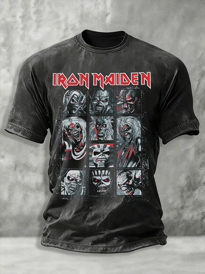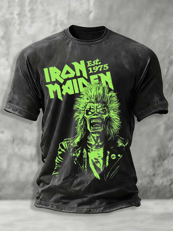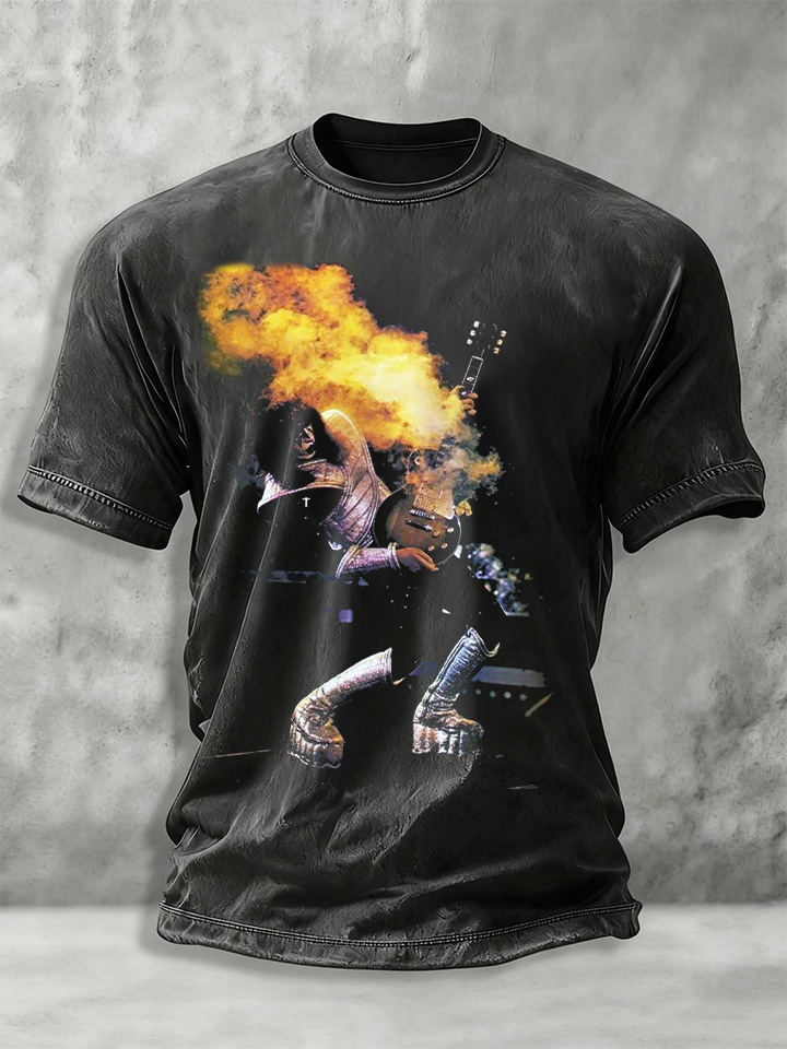 Men's Rock Band Print T Crew Neck Unisex Washed T-Shirt