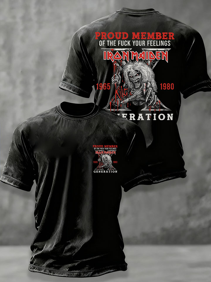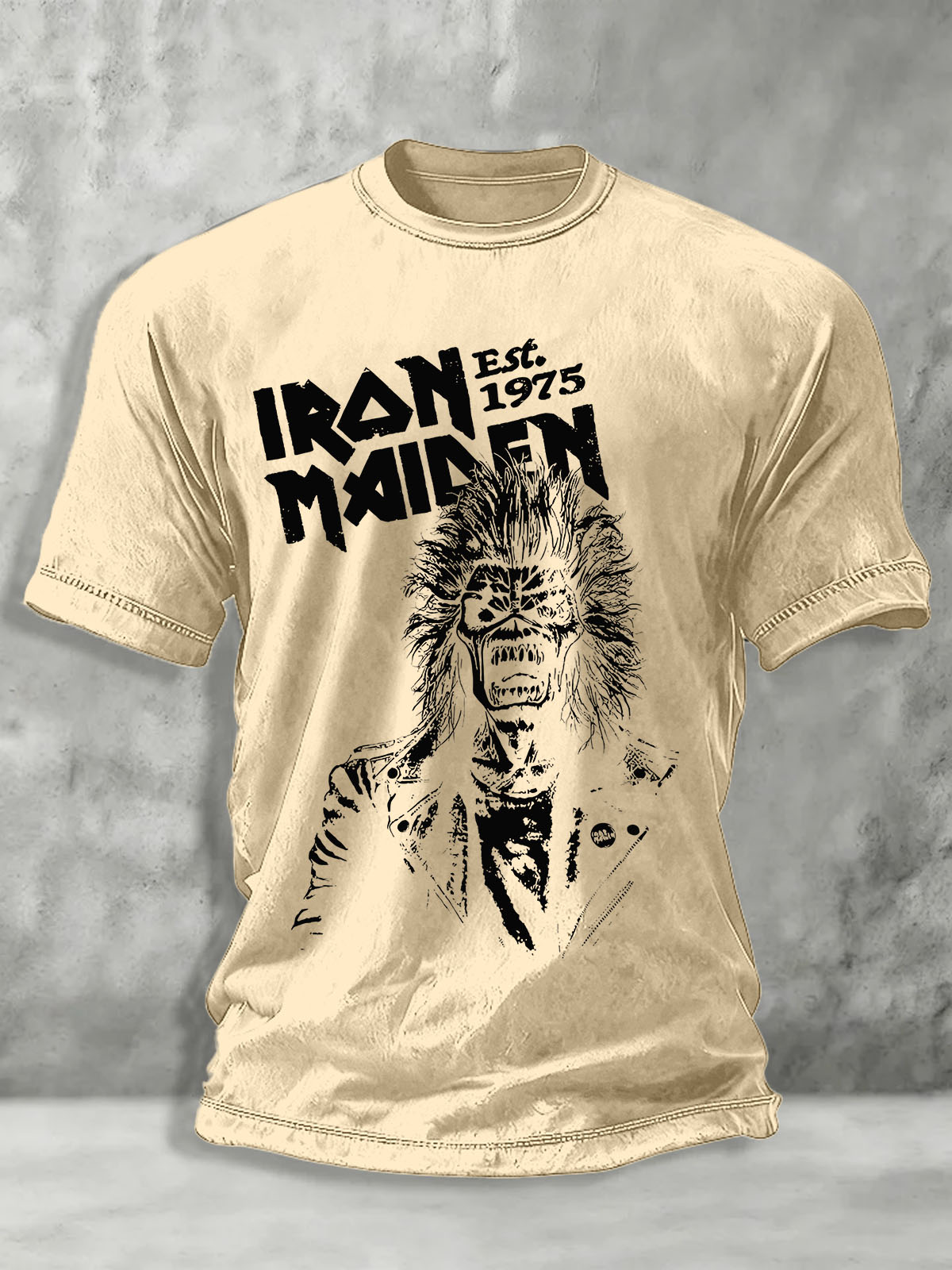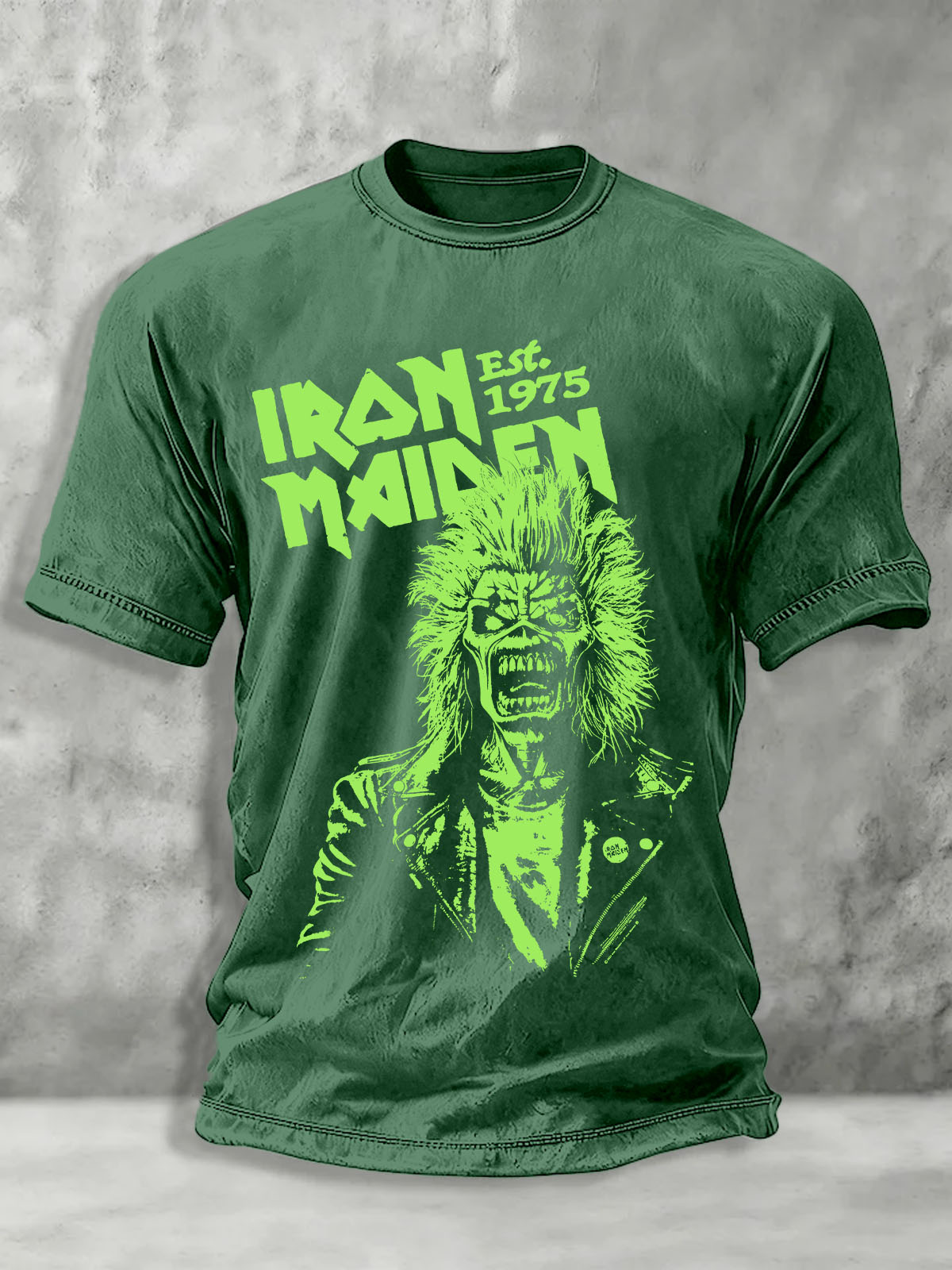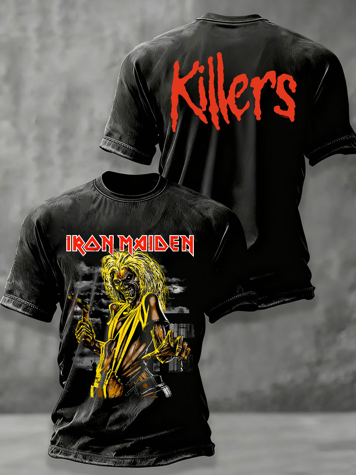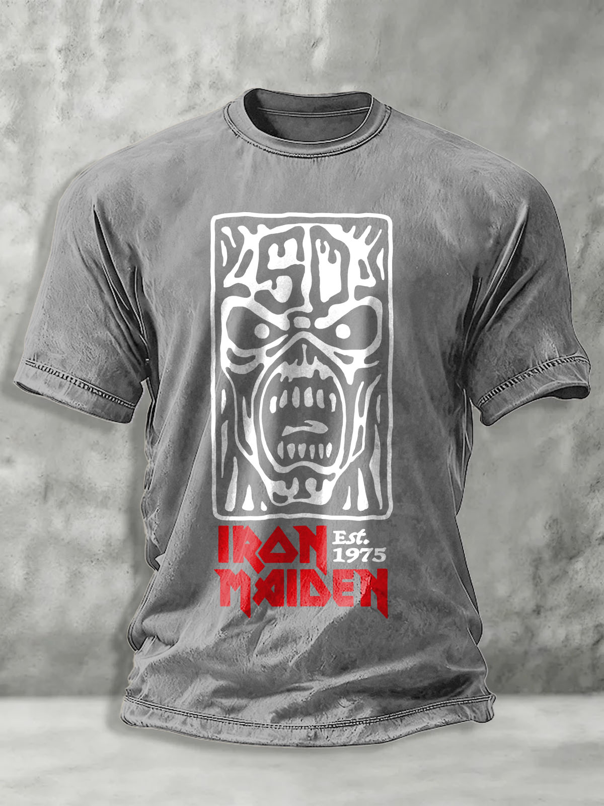 Men's Rock Band Print T Crew Neck Unisex Washed T-Shirt