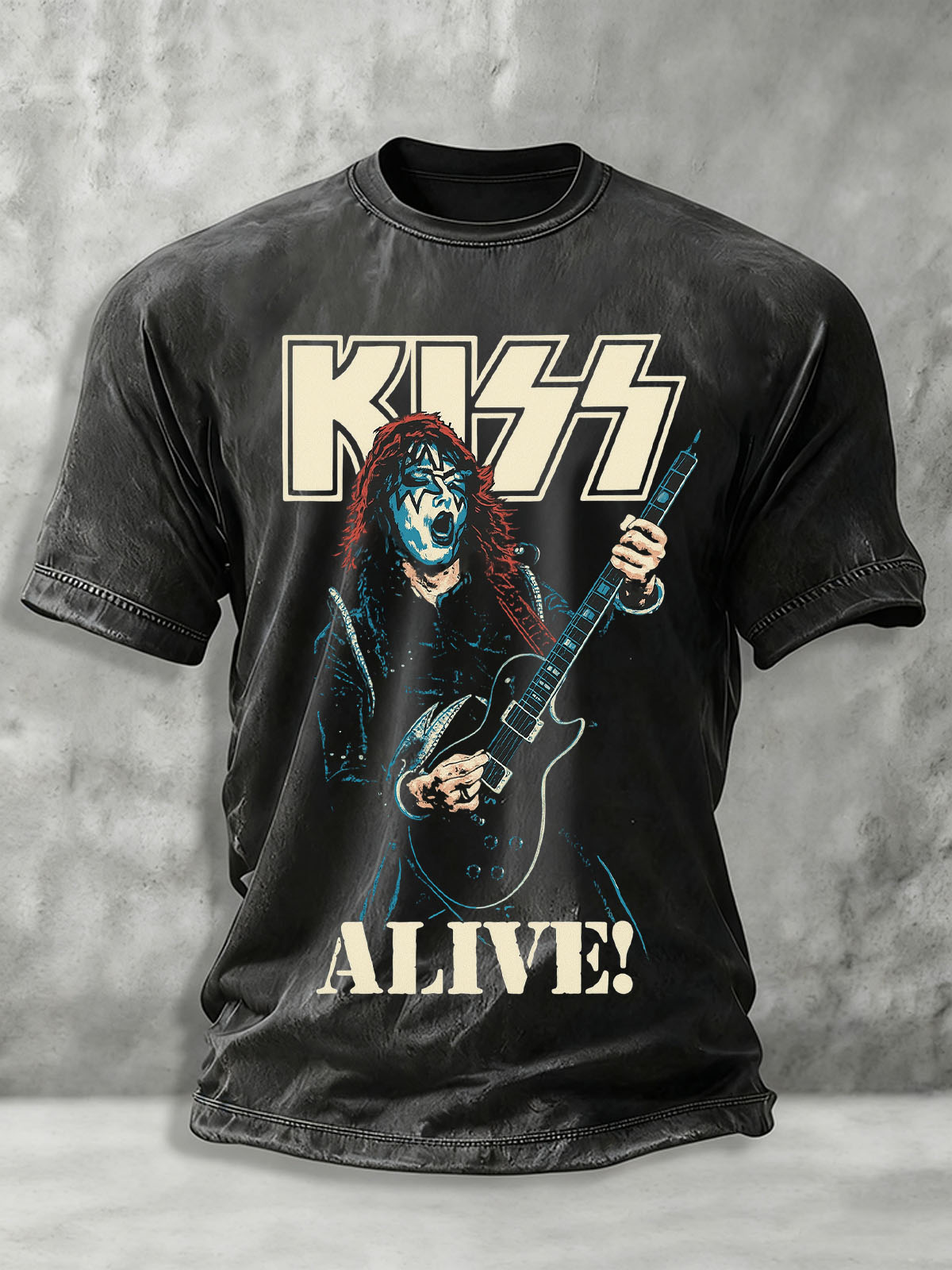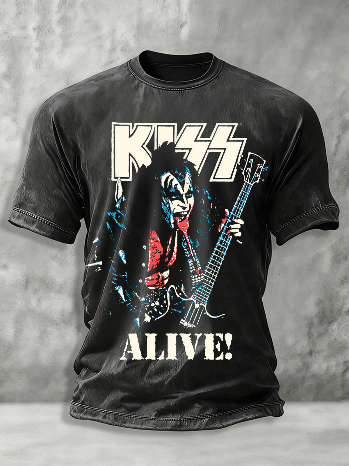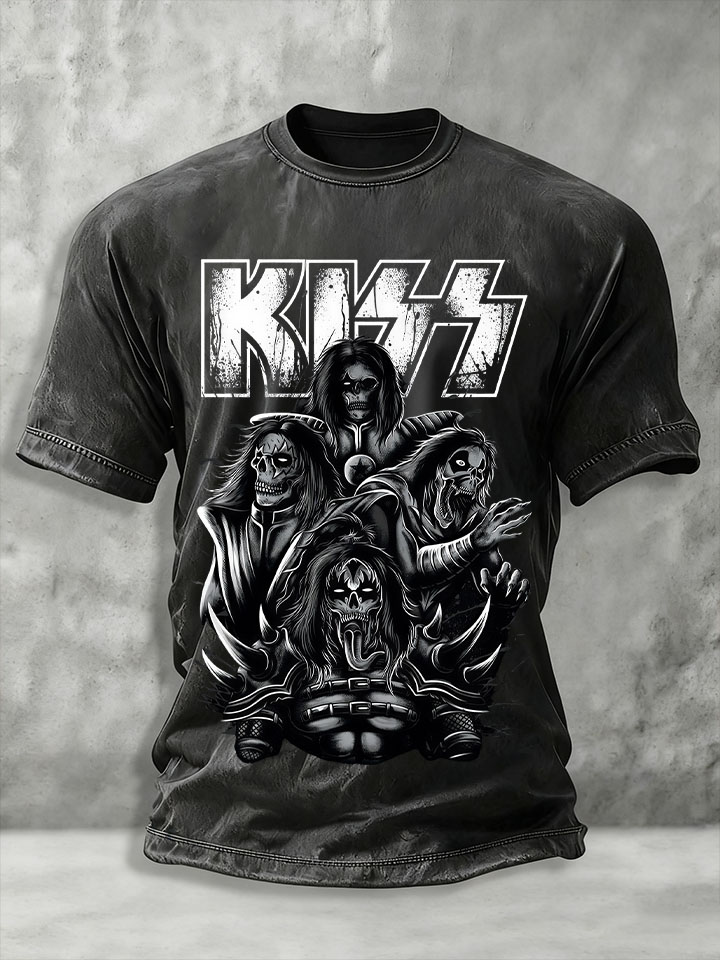 Kiss Band Faces Men's Tops Washed T-shirt$22.99 USD$42.99 USD