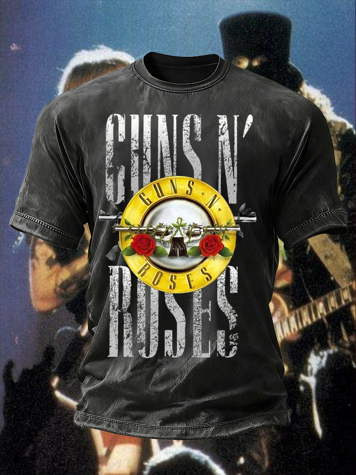Men's Retro Rock Rose Short Sleeves Washed T-shirt