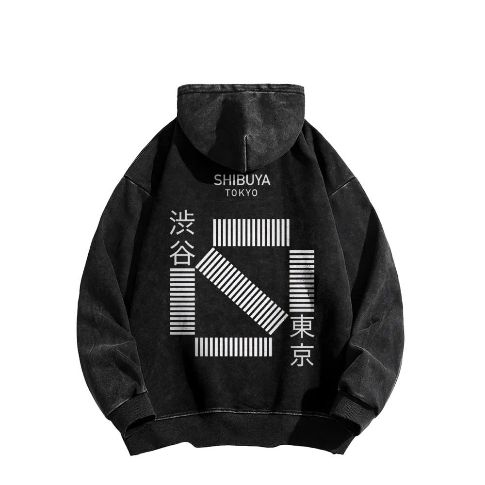 Shibuya Tokyo Front And Back Printing Vintage Washed Hoodie$48.95 USD