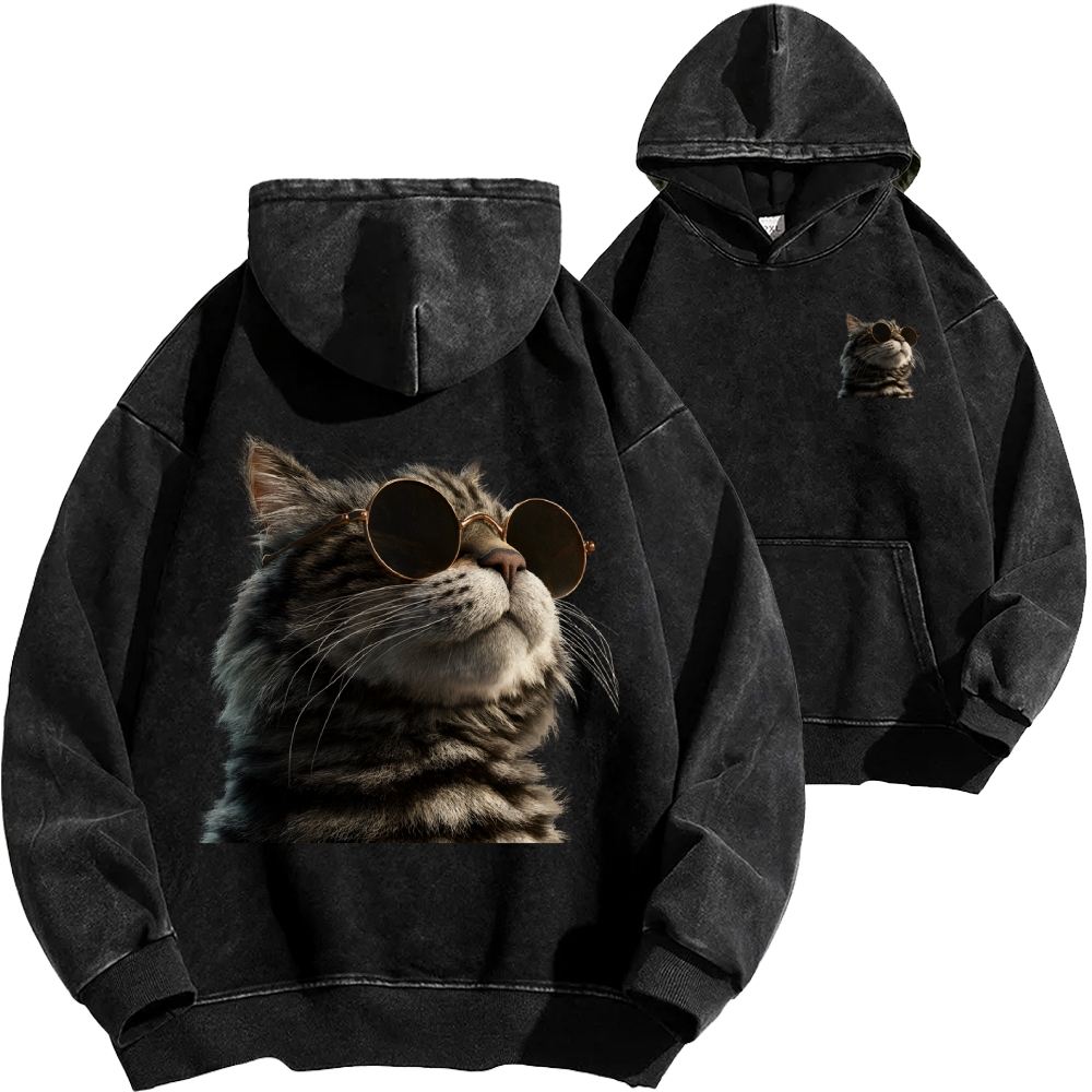 AI Image - Funny Cat Pictures Front And Back Printing Vintage Washed Hoodie$48.95 USD