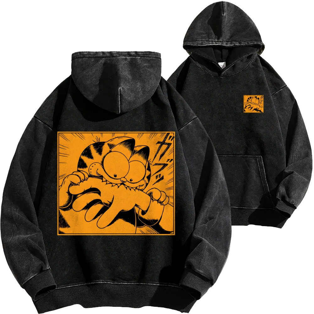 Garfield Overstimulation Front And Back Printing Vintage Washed Hoodie$48.95 USD