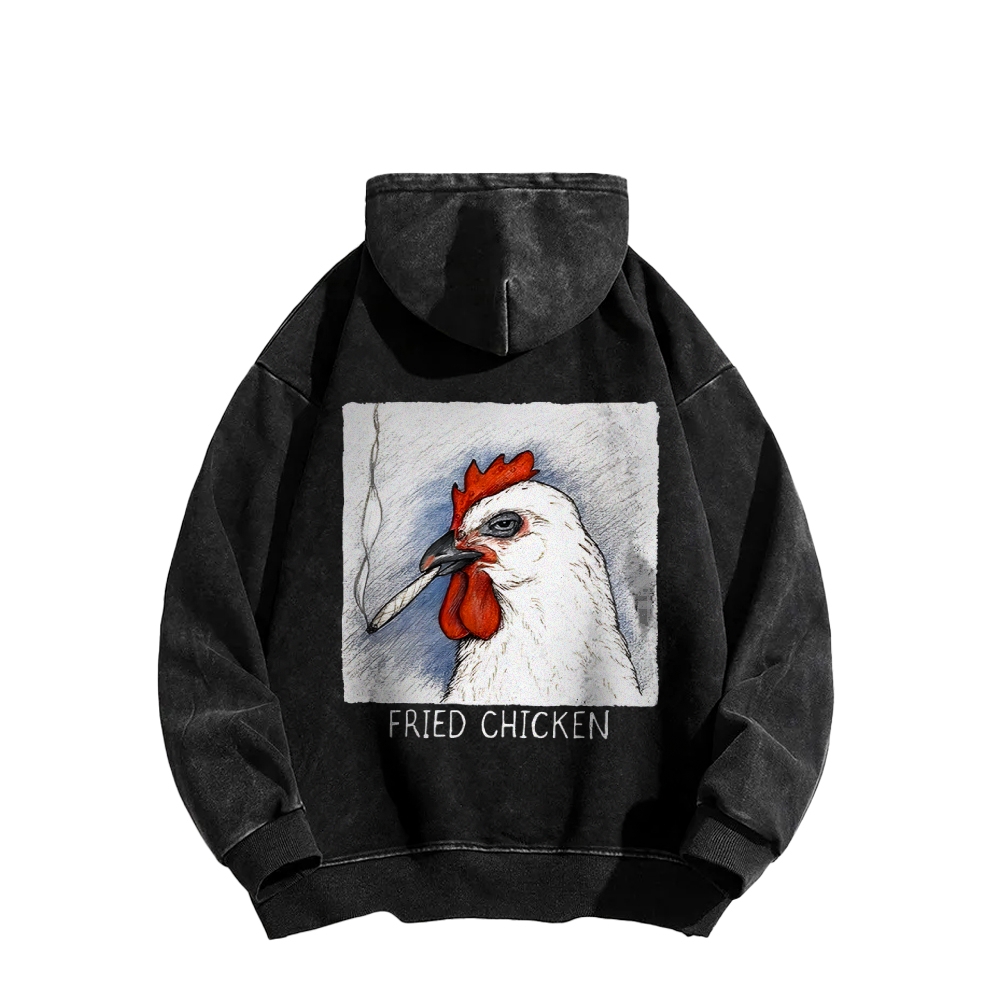 Smoking Chicken Back Printing Vintage Washed Hoodie$48.95 USD