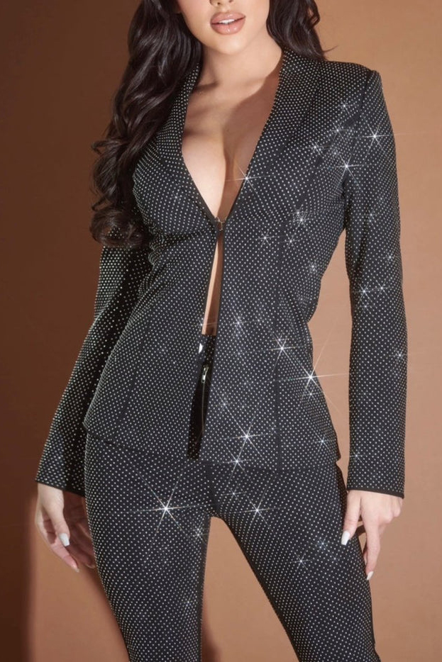 Ladies' Full Set Rhinestone Blazer+ Crystal Trousers Set$59.99 USD$79.99 USD