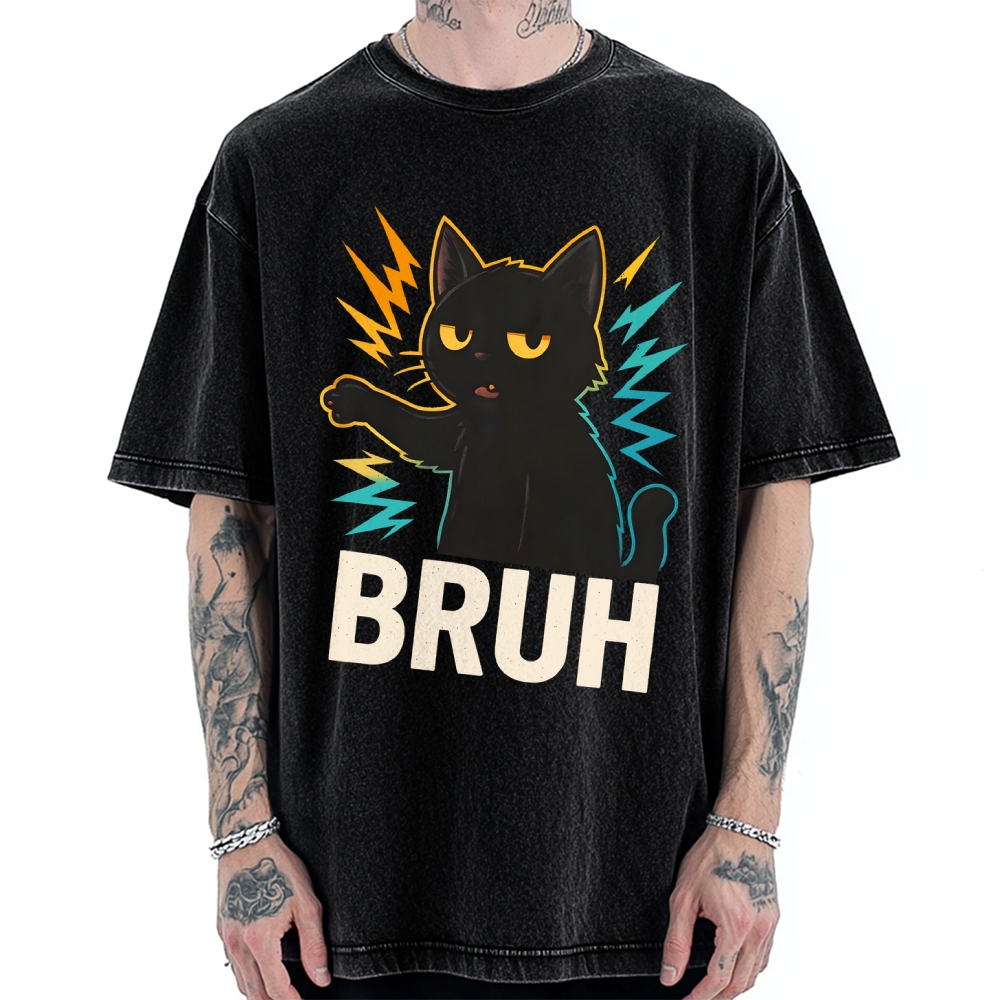 Bruh-Funny Cat Meme Humor Vintage Washed T-shirt$29.95 USD