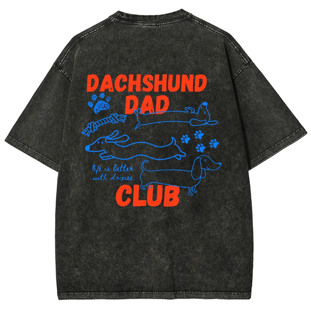Dachshund Dad Club Back printing Vintage Washed T-shirt$29.95 USD