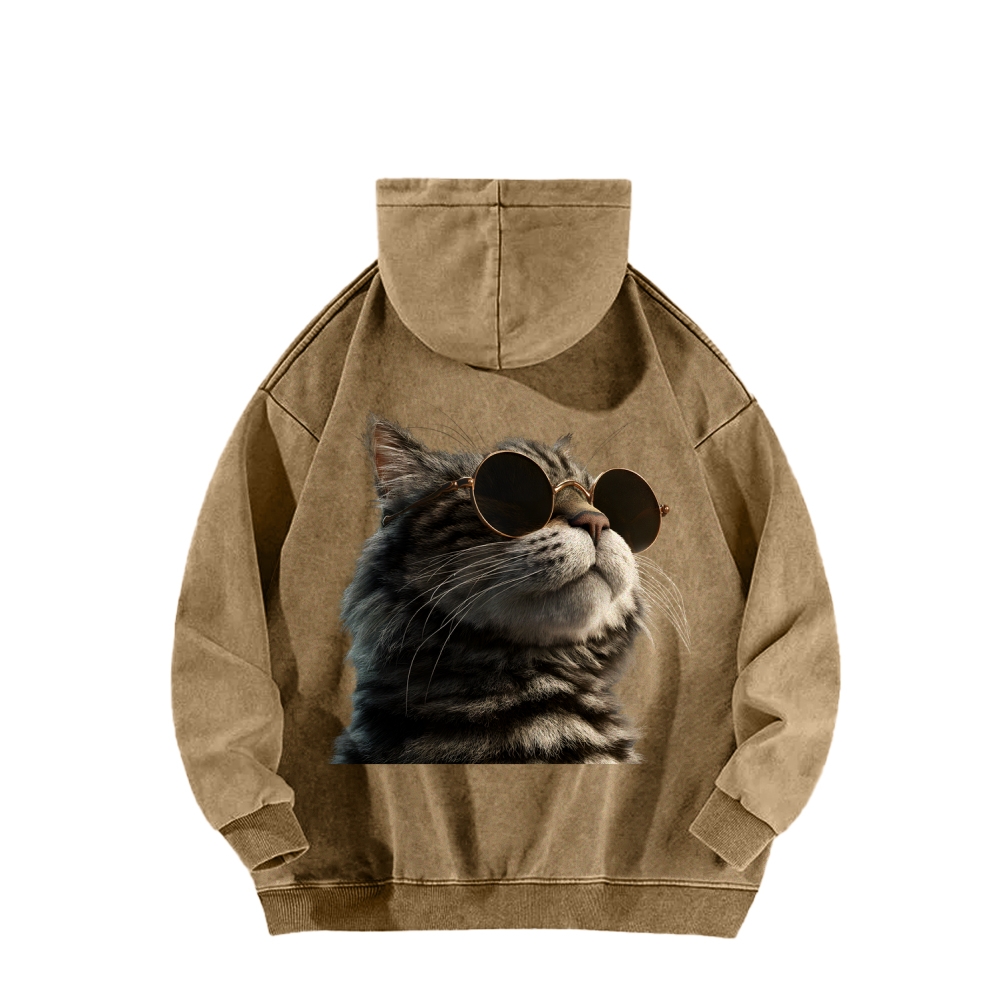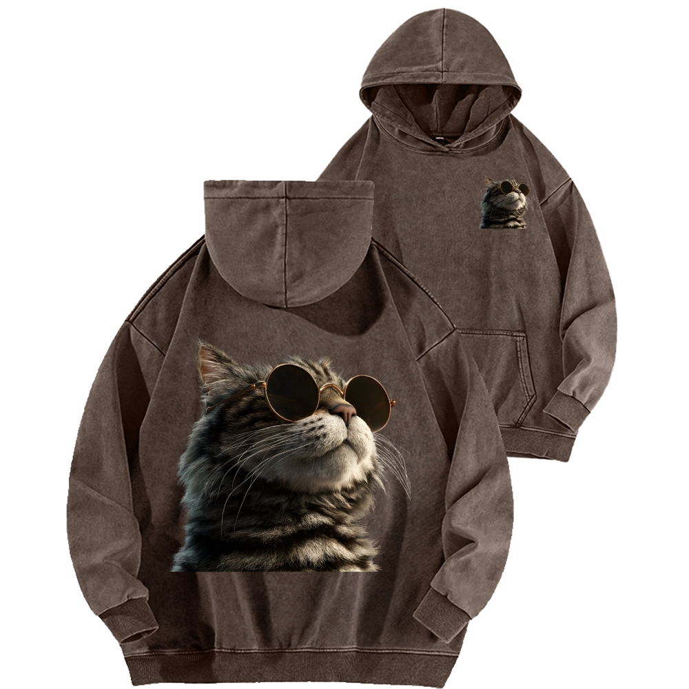 AI Image - Funny Cat Pictures Front And Back Printing Vintage Washed Hoodie