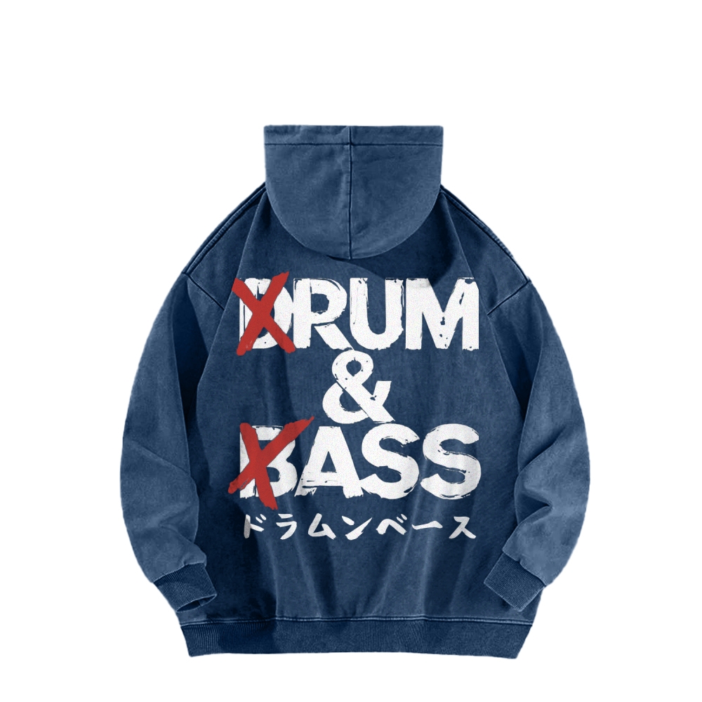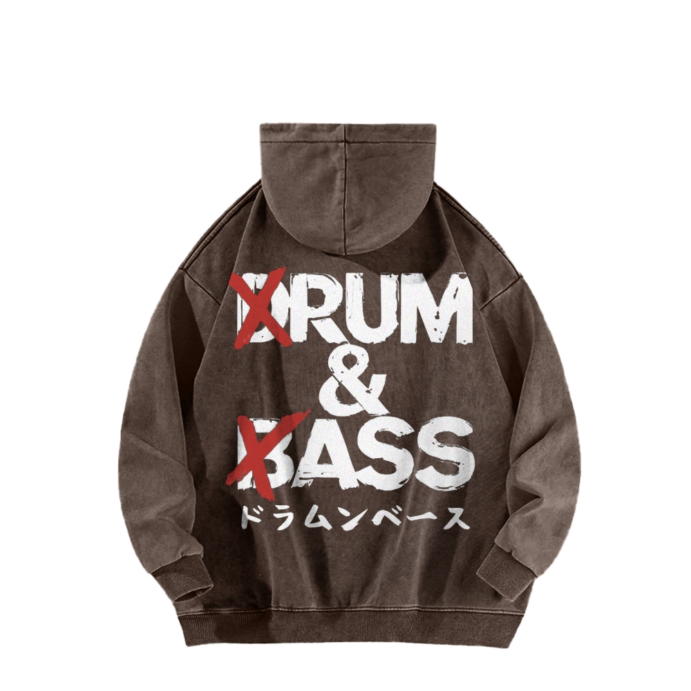 Drum And Bass Front And Back Printing Vintage Washed Hoodie