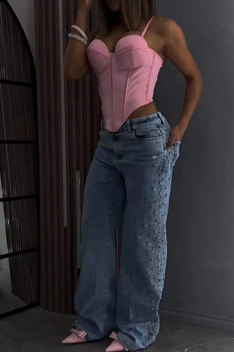 Elegant Ladies' Crystal Embellished Slim Fit Jeans