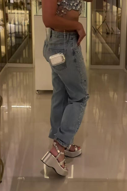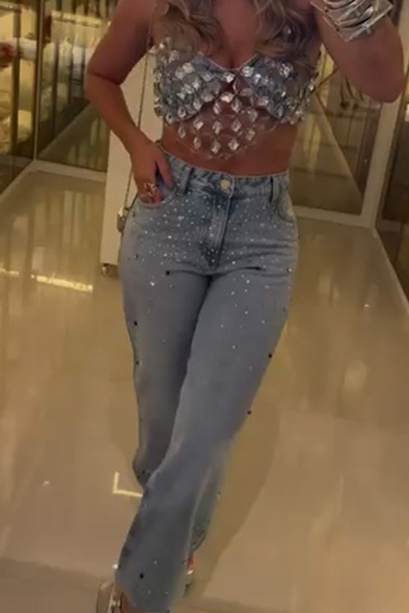 Elegant Rhinestone & Crystal Embellished Denim Jeans for Women