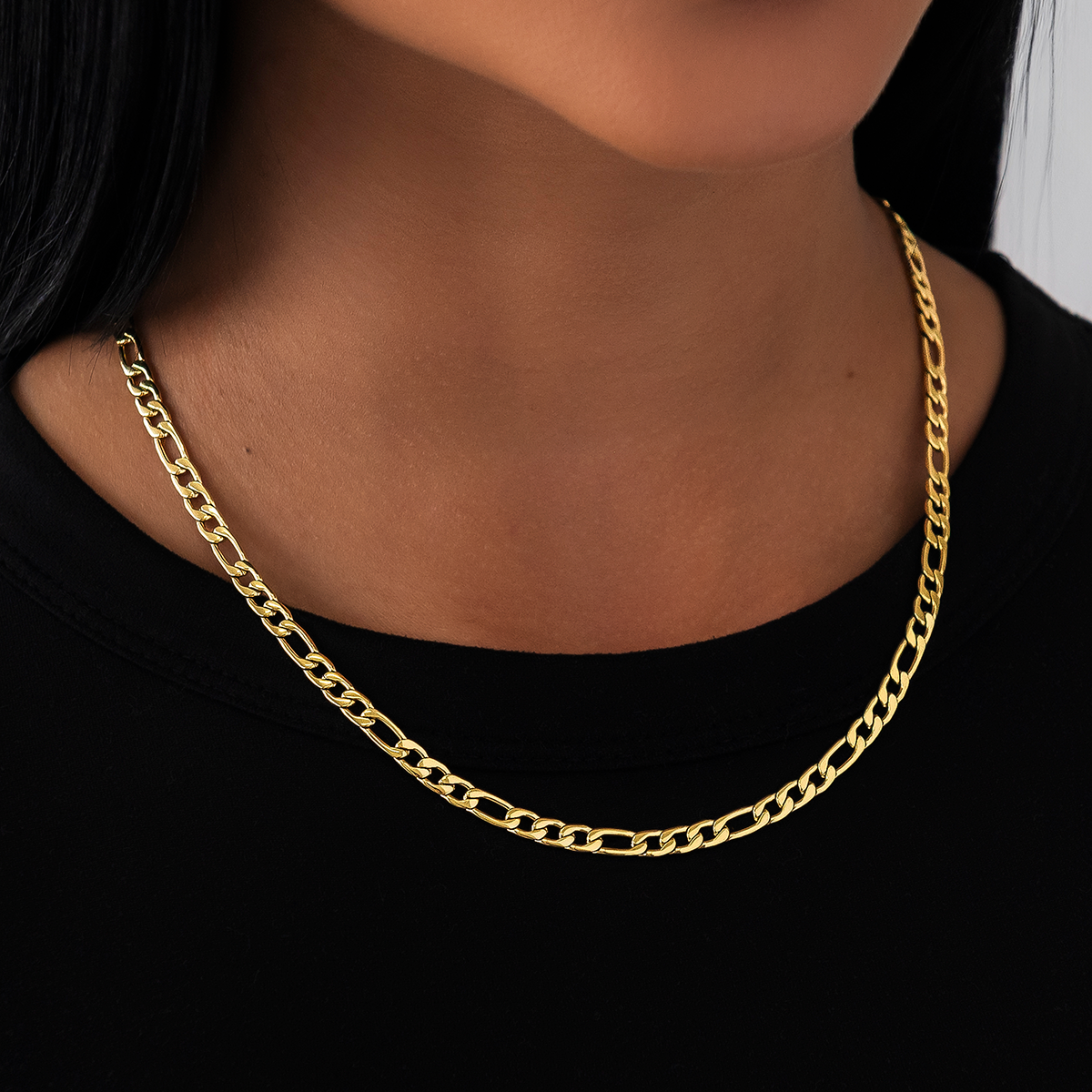 Introducing the Figaro Link Necklace - 4mm. A classic look sure to complete any fit. You know you'll stand out when you're rockin' this piece.