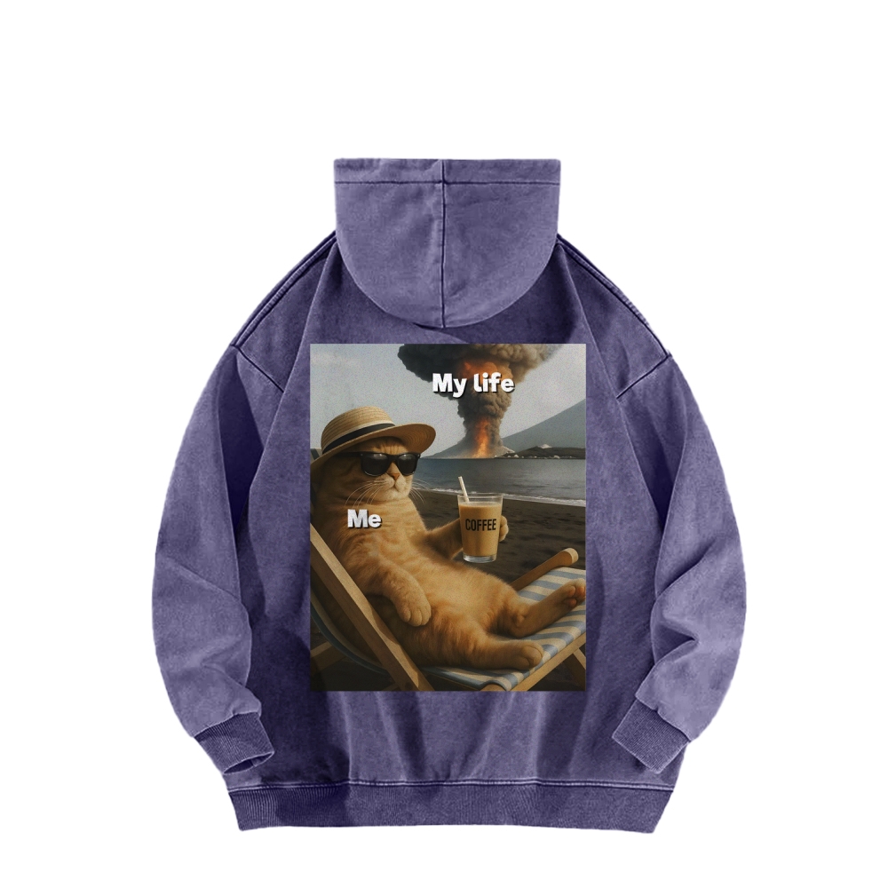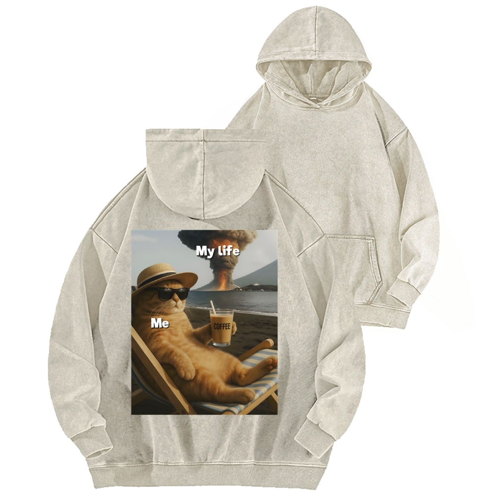 Funny Cat Meme Back-printed Vintage Washed Hoodie