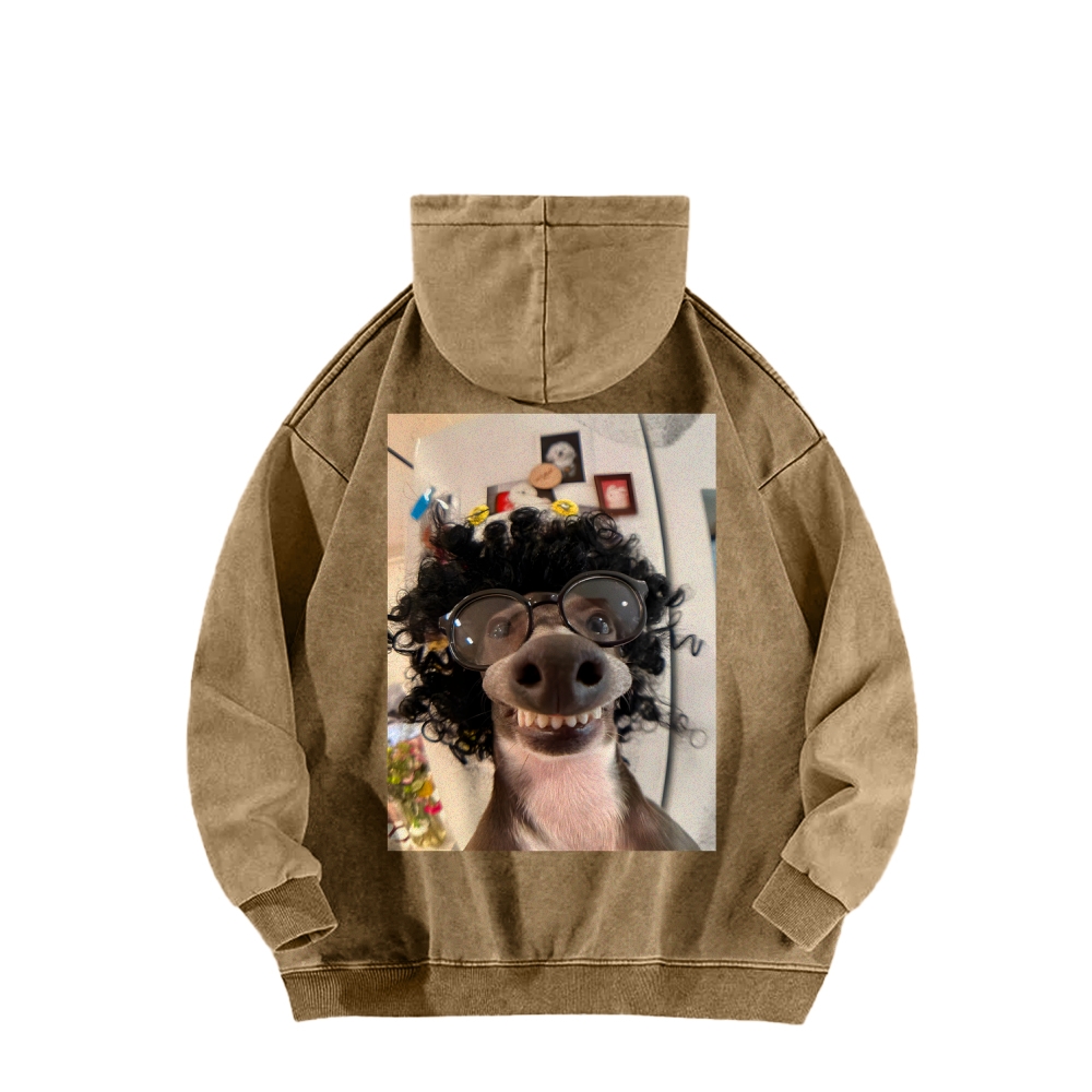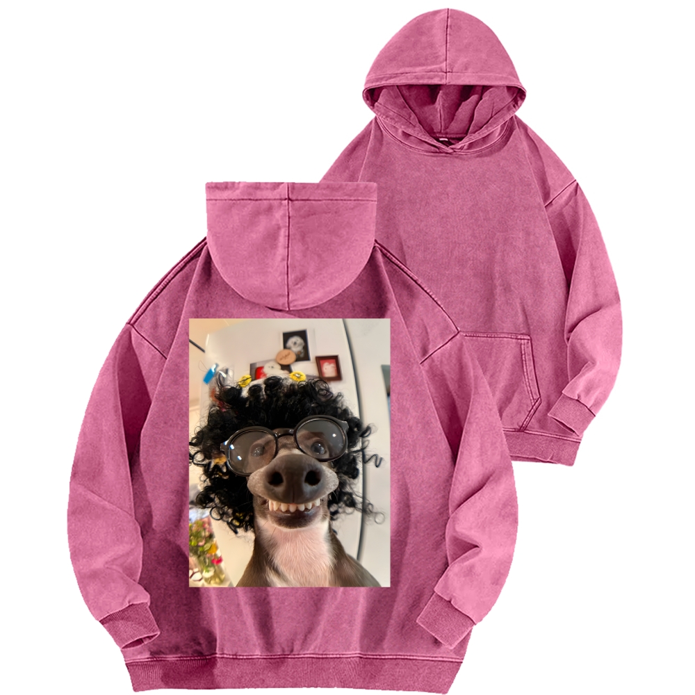 Funny Dog Meme Pictures Back-printed Vintage Washed Hoodie