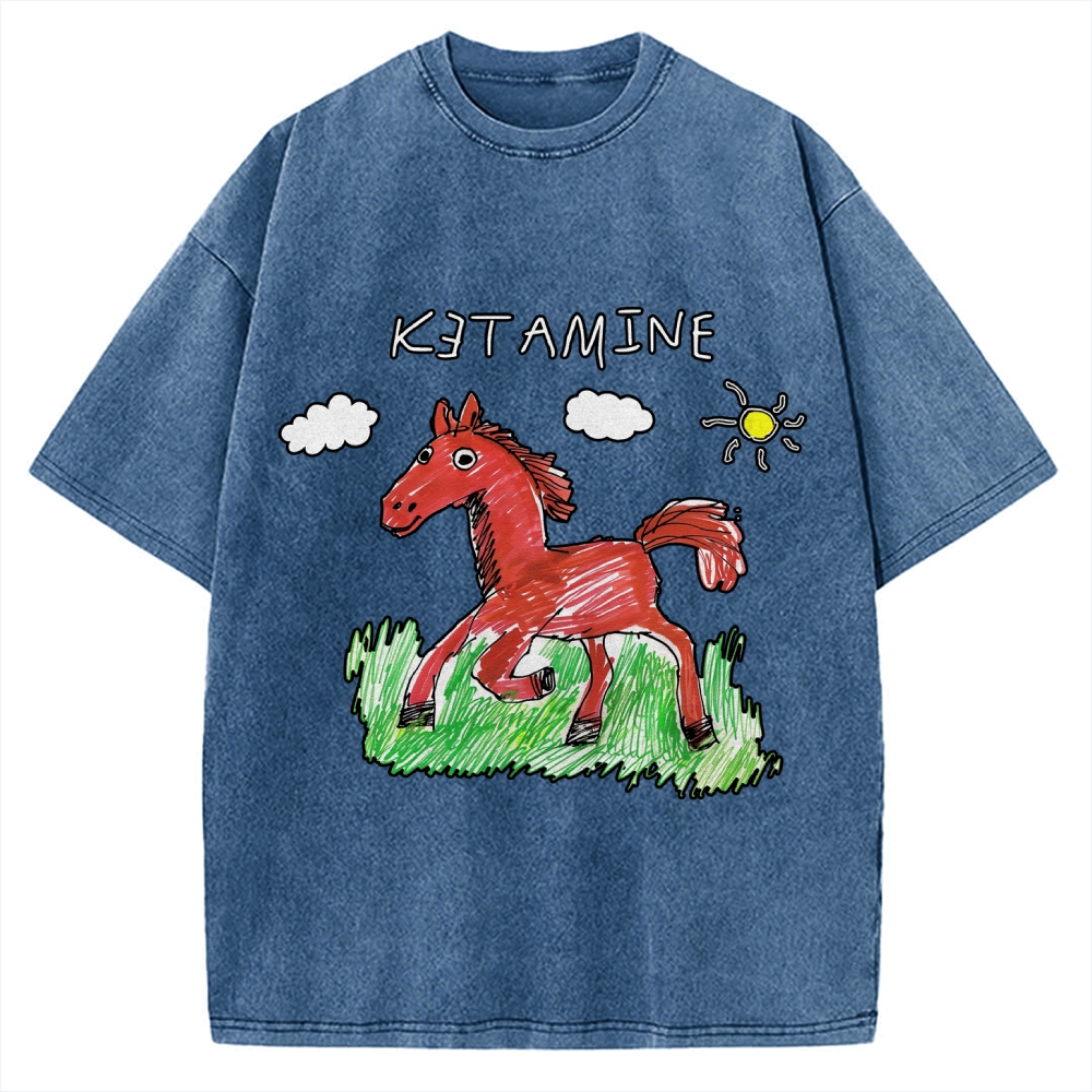 Ketamine Horse Funny Children's Drawings Vintage Washed T-shirt