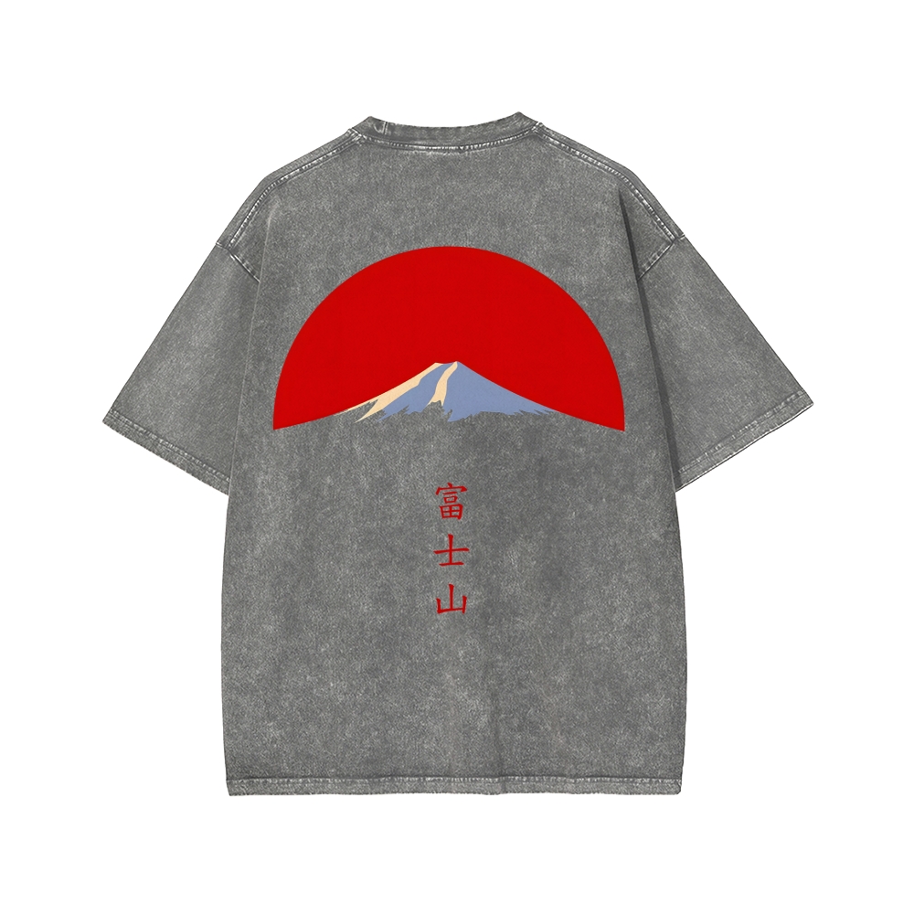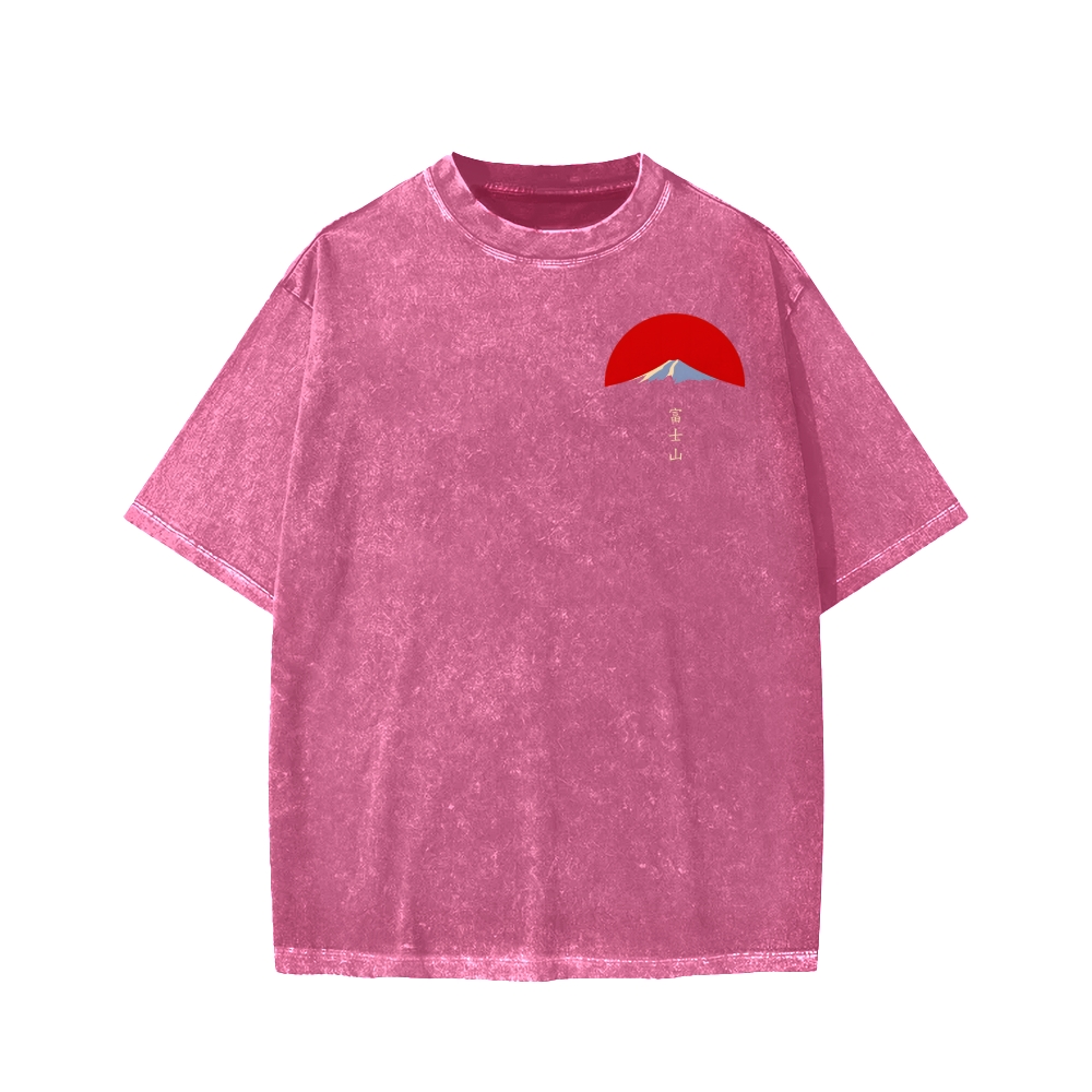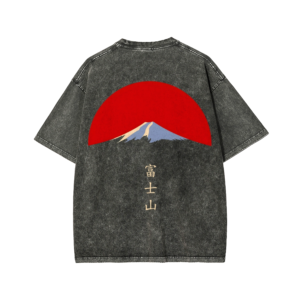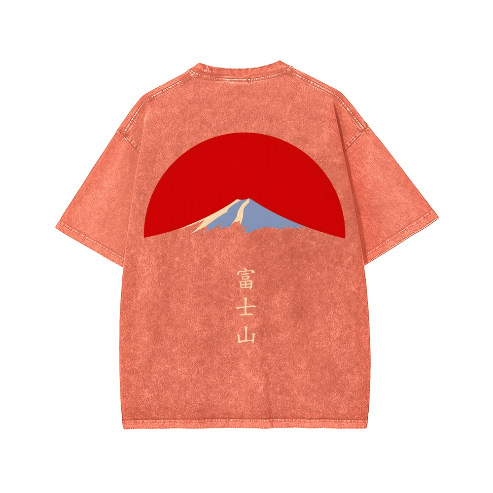 Mount Fuji in Tokyo Japan Front And Back Printing Washed T-shirt
