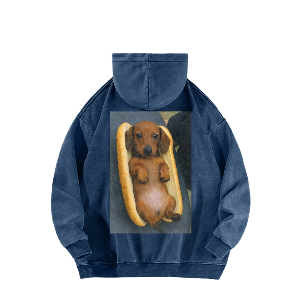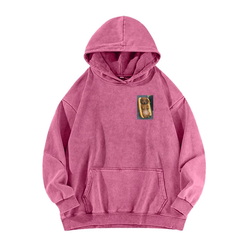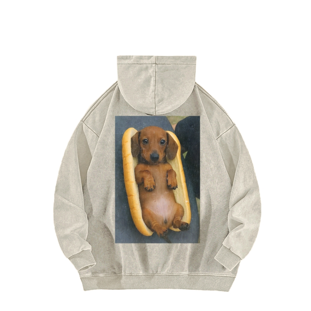 REAL HOT DOG Front And Back Printing Vintage Washed Hoodie
