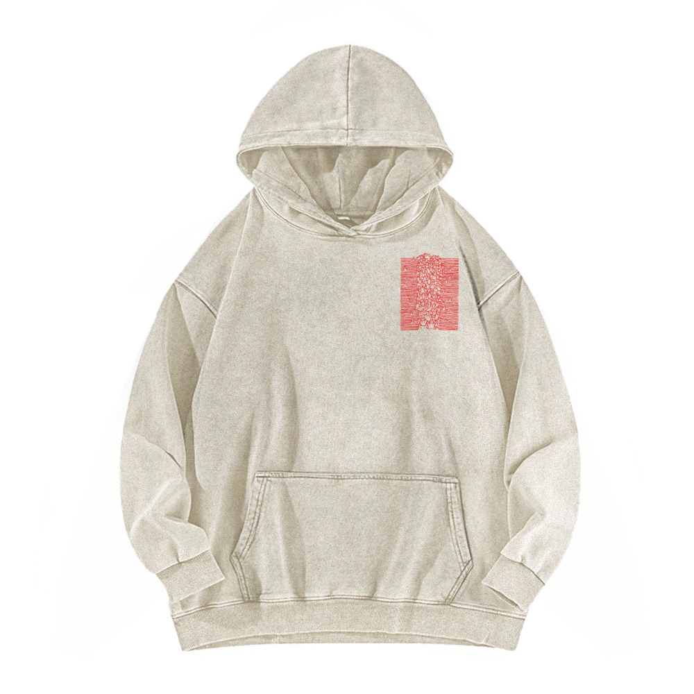 Satanic Lines Front And Back Printing Vintage Washed Hoodie
