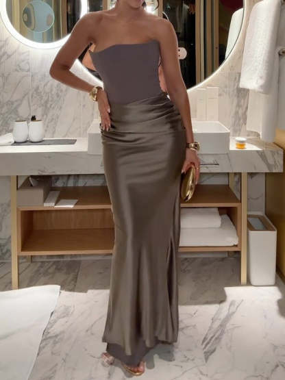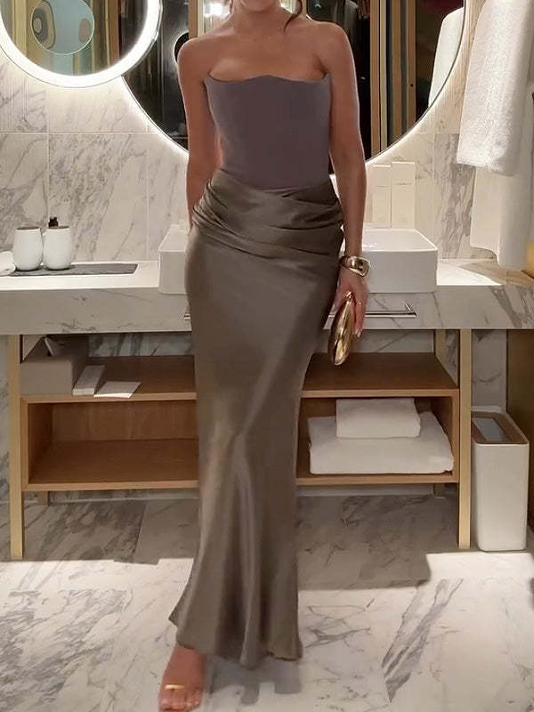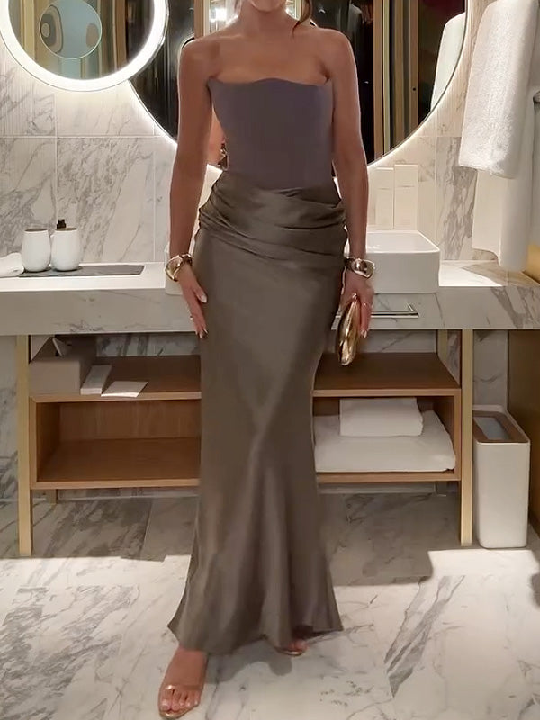 Sleeveless strapless solid color dress