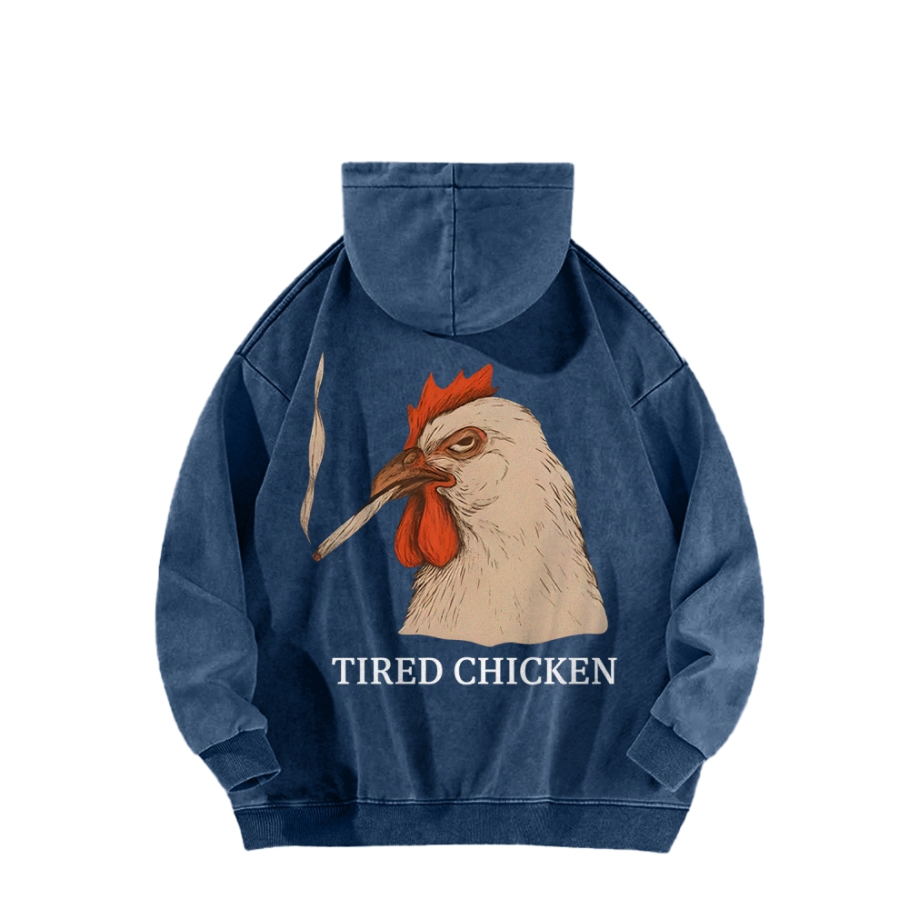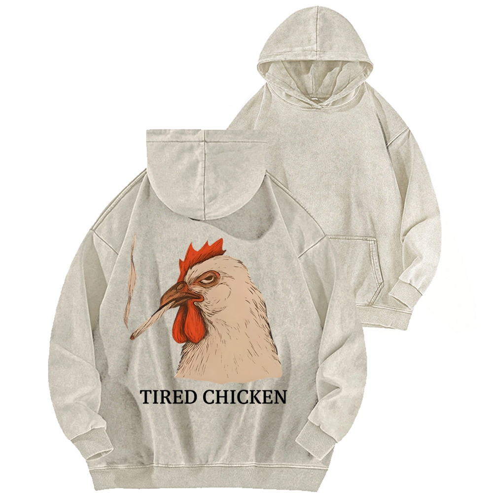 Smoking Chicken Back Printing Vintage Washed Hoodie