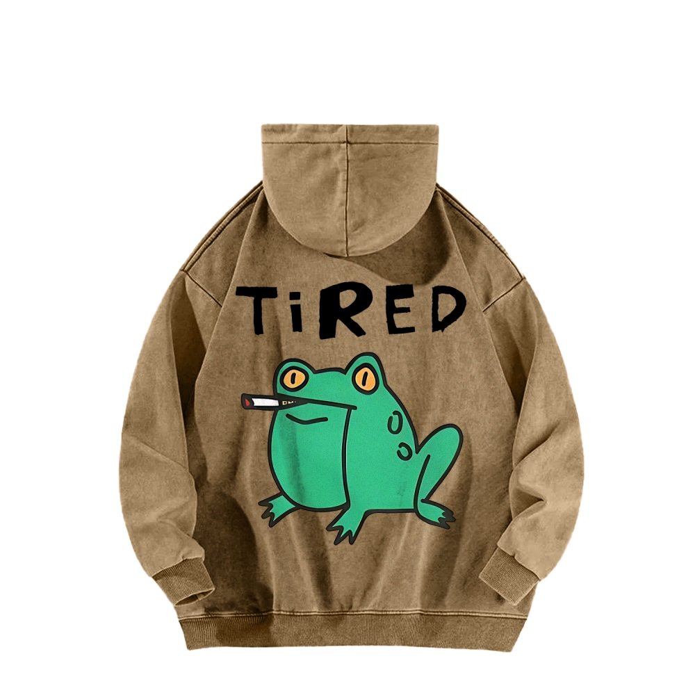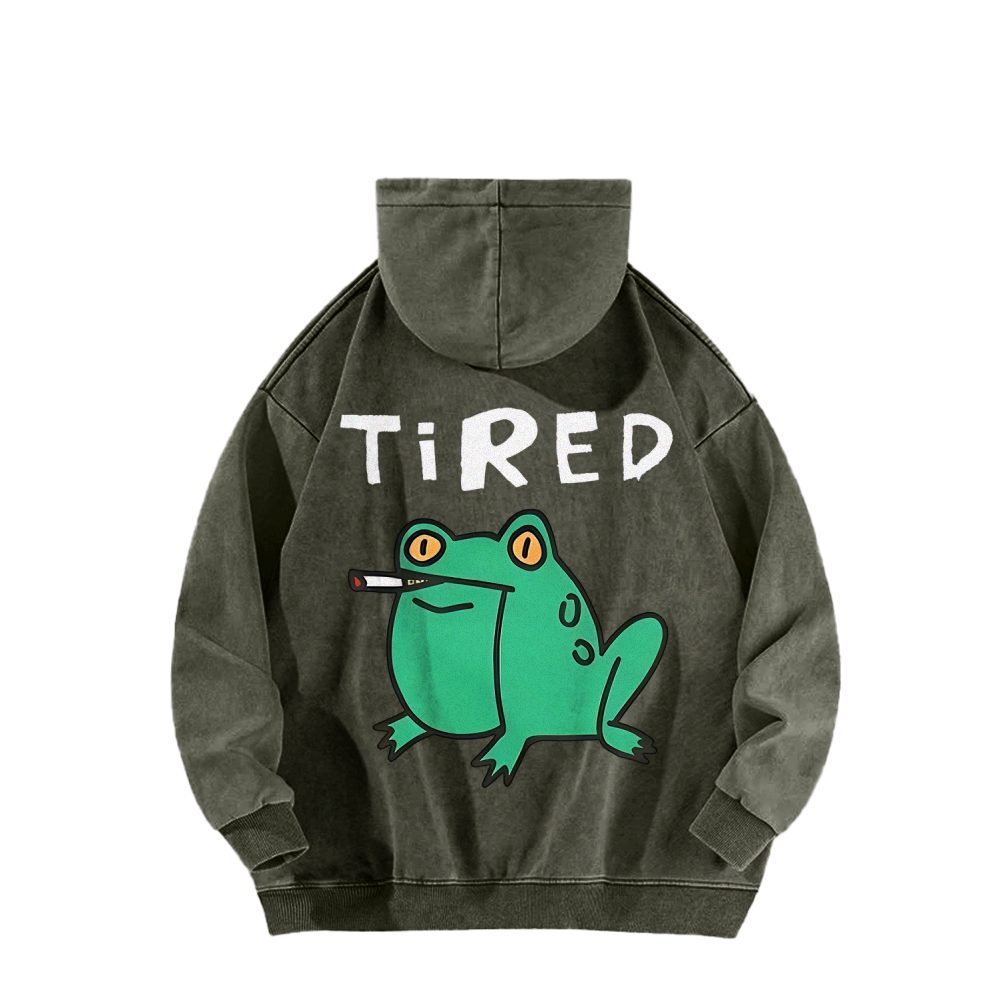 Smoking Frog Back Printing Vintage Washed Hoodie
