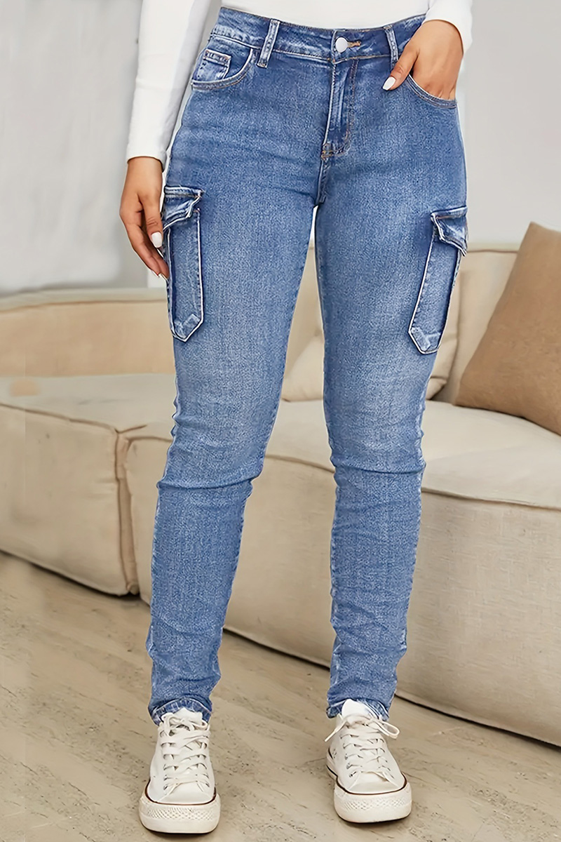 Stylish Women's Distressed Low-Rise Skinny Jeans with Side Pockets