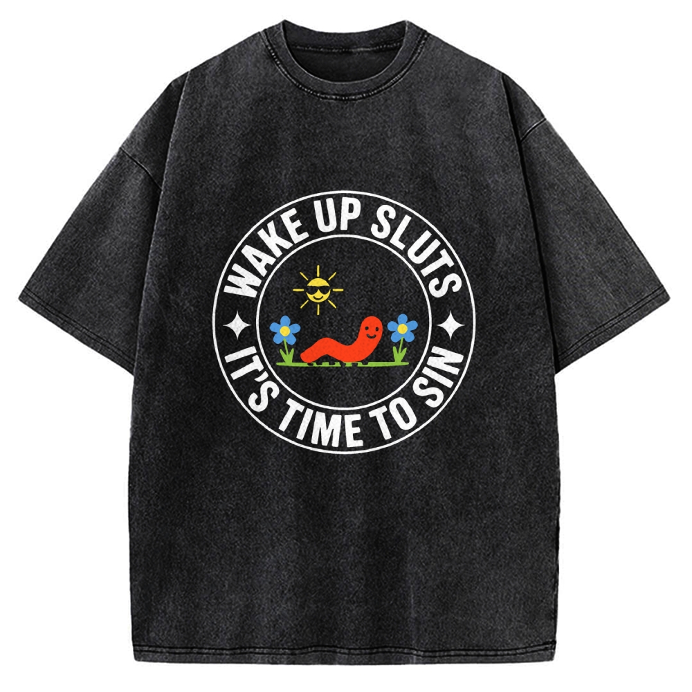 Wake Up Sluts It's Time To Sin Vintage Washed T-shirt