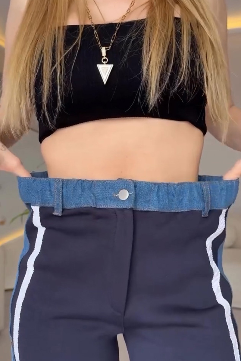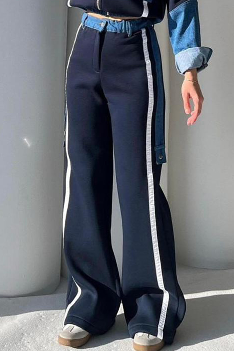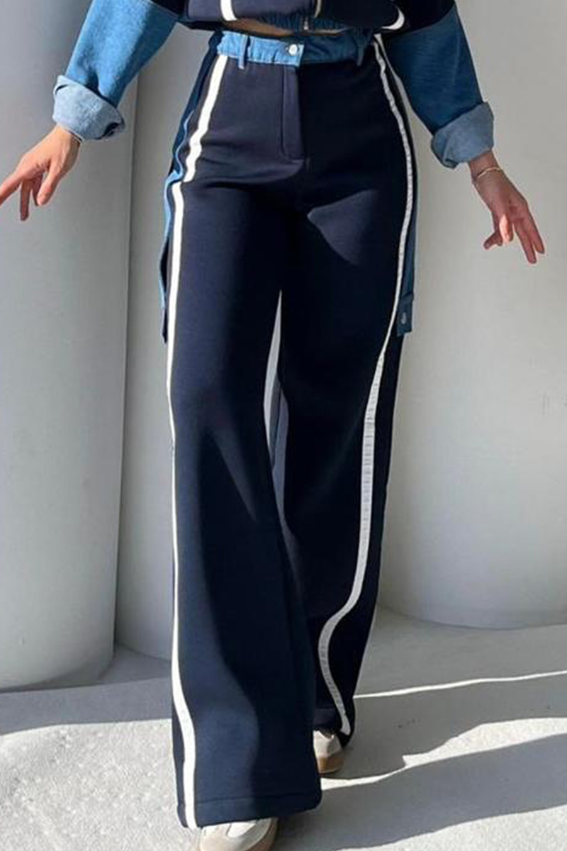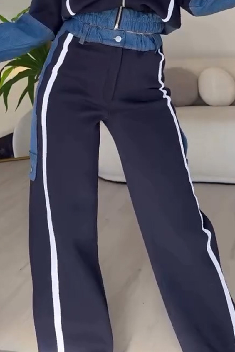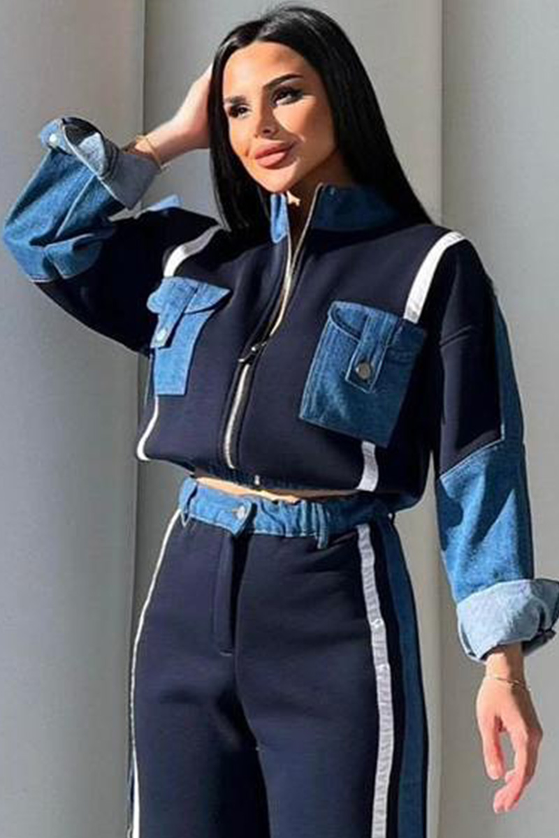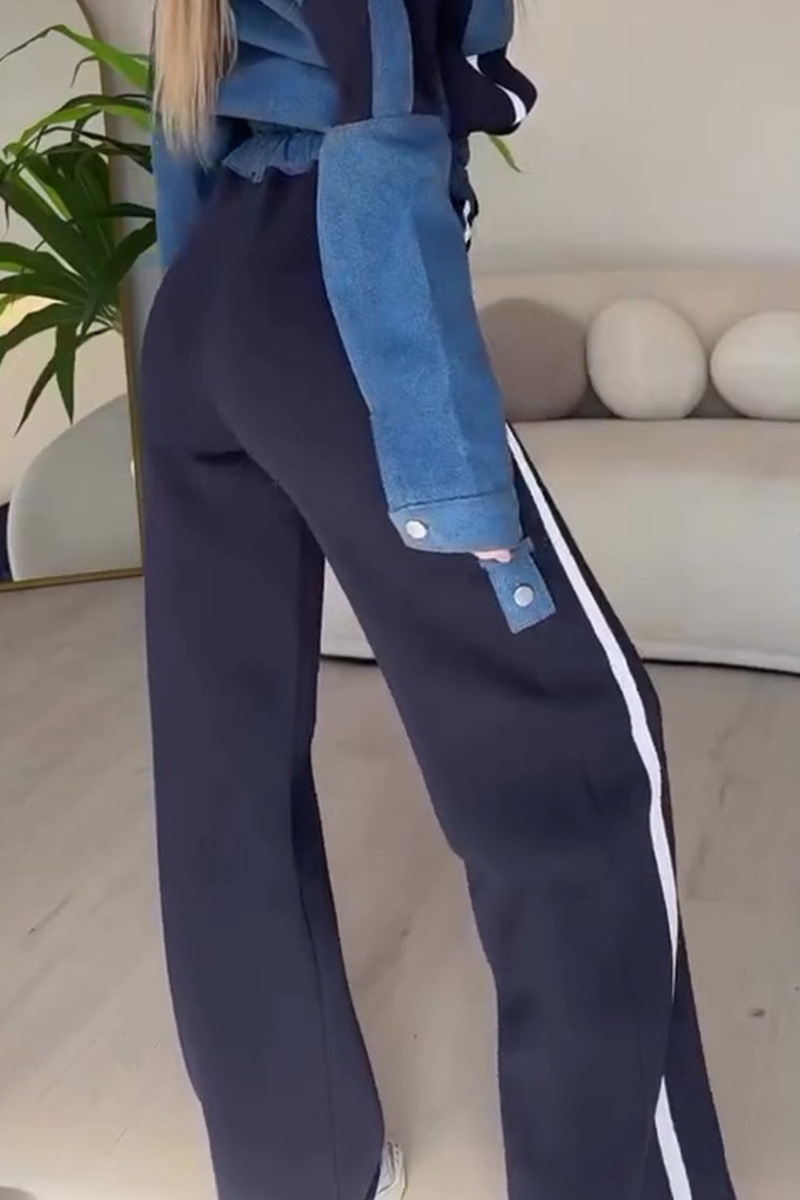Women's Casual Denim Panel Jacket + Wide Leg Pants